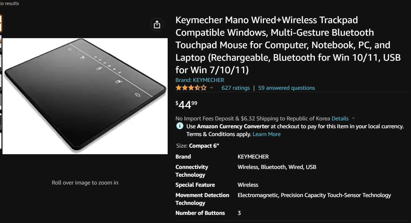 윈도우용 트랙패드로 현재 구입할수 있는 대안은 Keymecher 의 제품을 아마존에서 직구하는 것이다.