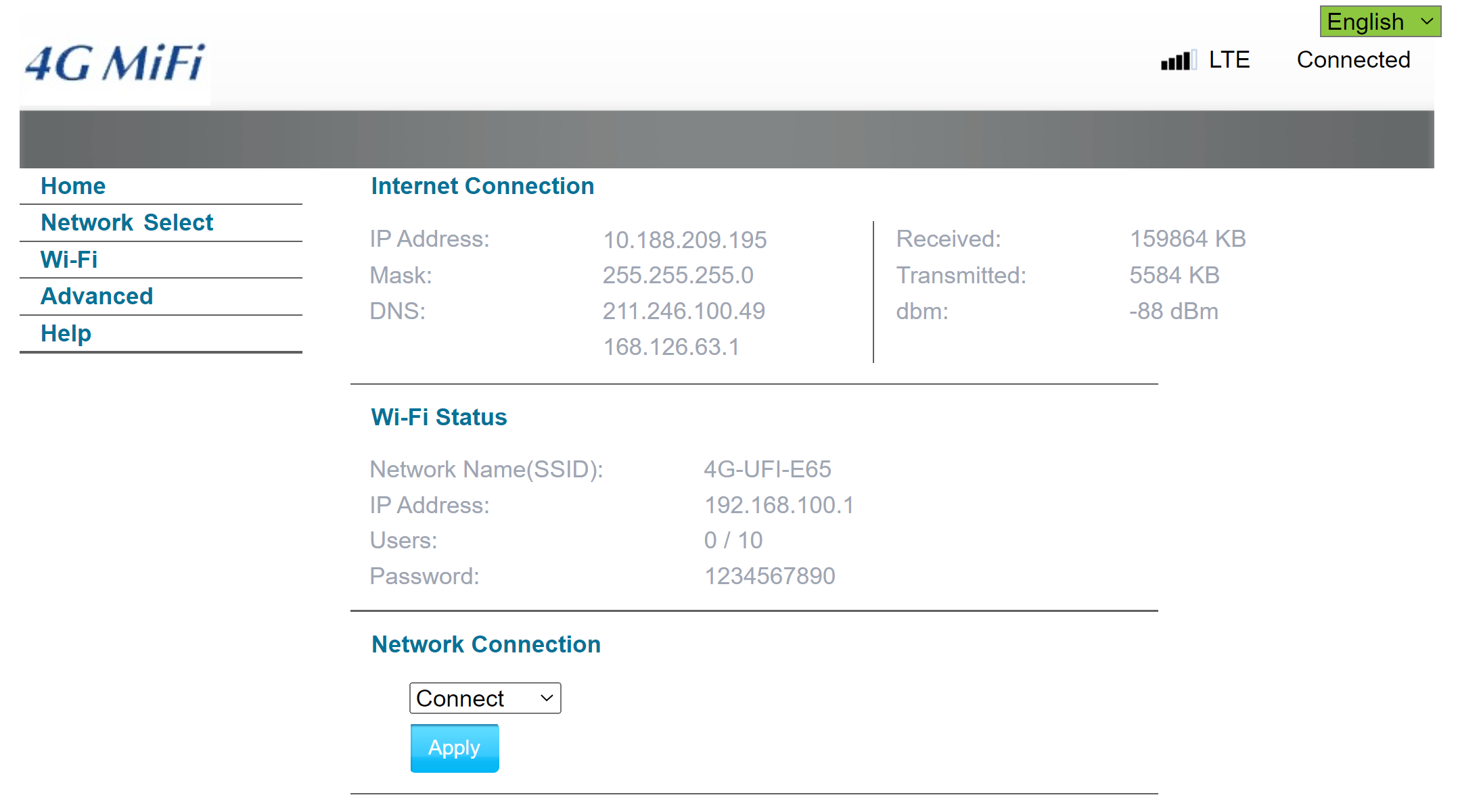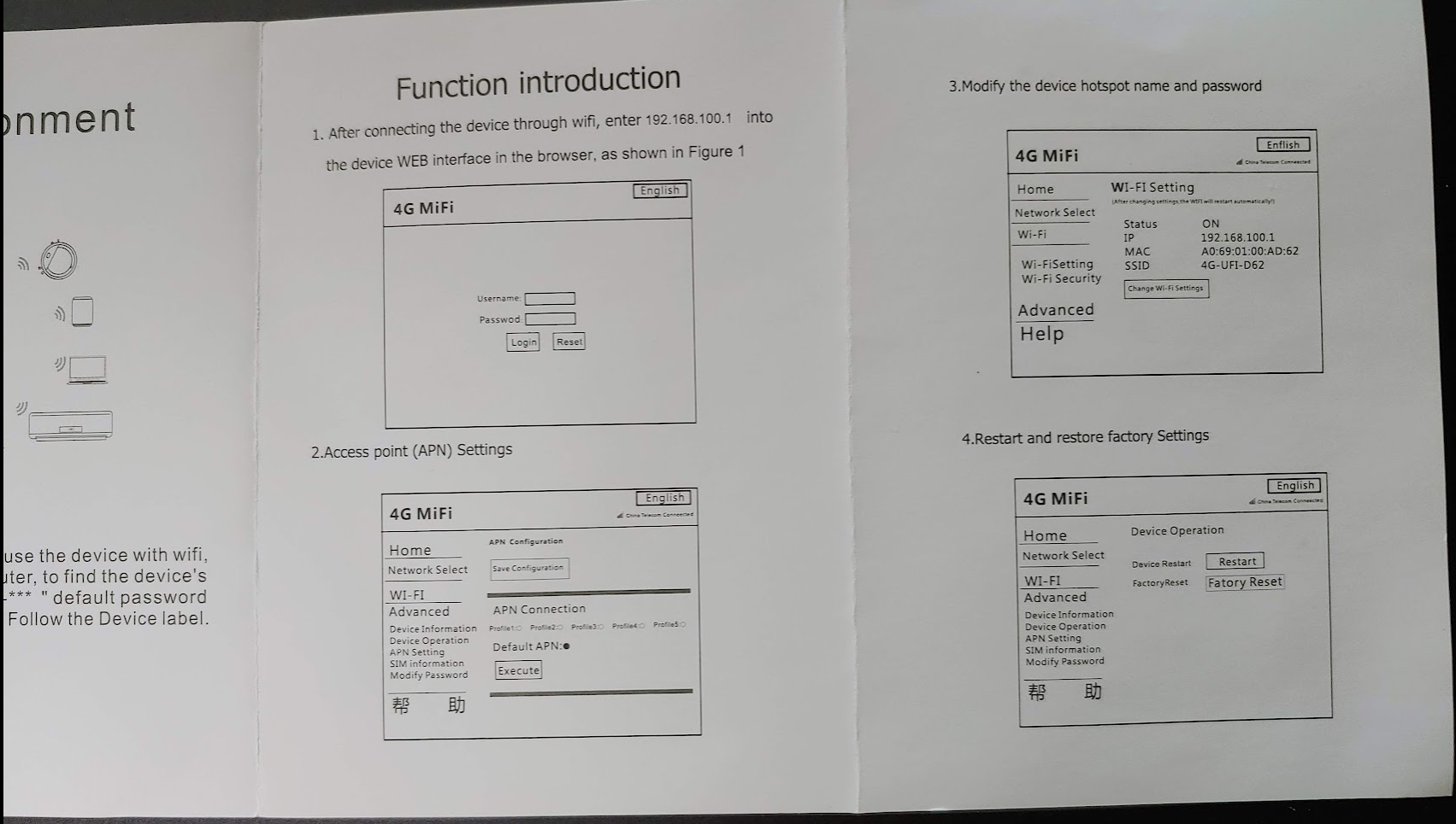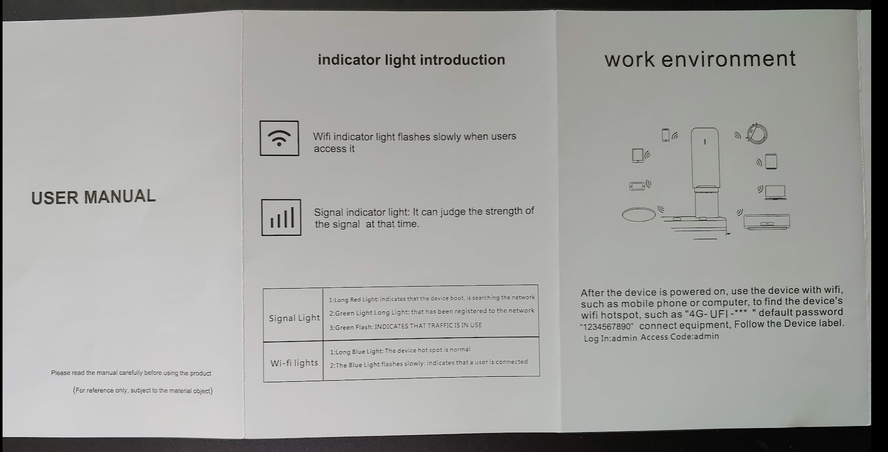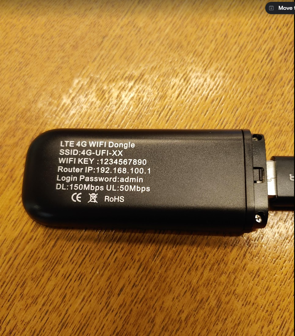 전원이 들어가면 Wifi HotSpot이 생성된다. 기본 네트워크 명칭은 4G-UFI-xxx 라는 이름으로 나온다.