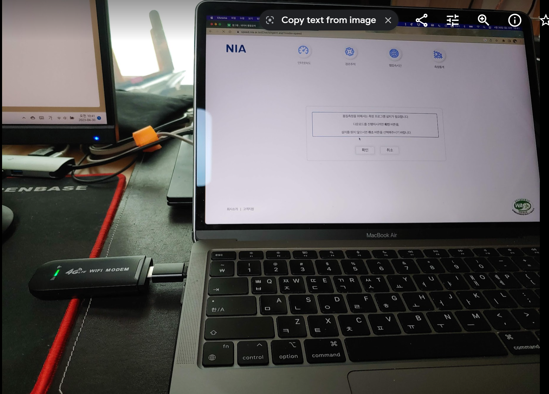 (2) 시험삼아 PC에 동글을 꽂아둔 상황에서 PC와 휴대폰 두 개에서 동시에 FHD 영상을 재생해봤다. PC는 정상재생 되는데, 휴대폰은 잠시 후 끊긴다. 하지만 휴대폰에서 앱 실행 정도는 충분하다. (스펙상 150M bps라고 하지만 그럴리는 없고... 다운로드 6.3Mbps, 업로드 5.7Mbps 나왔다) -> PC에서 속도측정을 실행하면 최대 20Mbps 나온다.