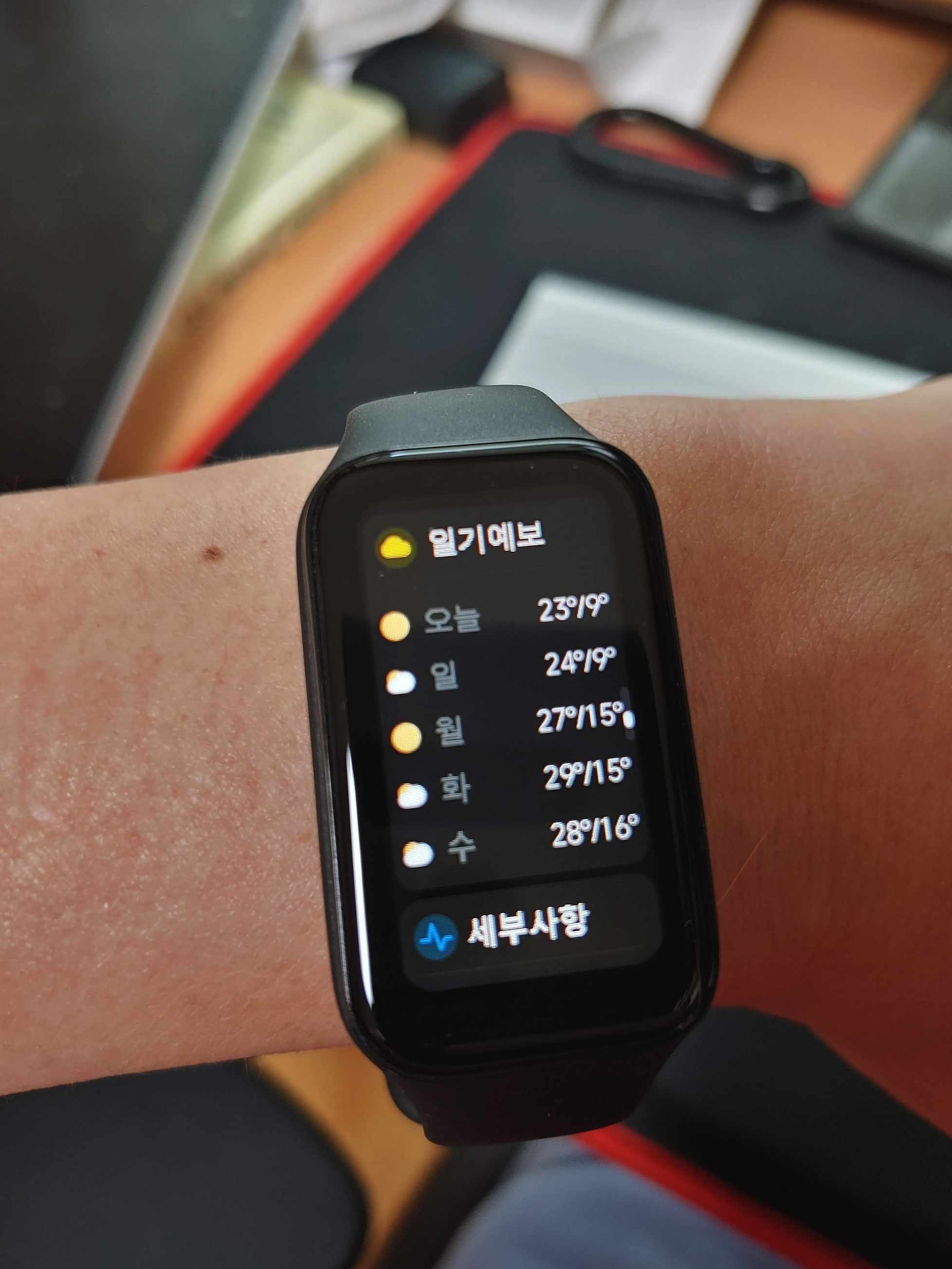 - 액정은 미밴드 (및 그보다 비싼 제품들)는 아몰레드인데 이 제품은 TFT LCD이다. 쨍한 느낌이 조금 덜하고, 야외에서 시인성이 조금 떨어지는 건 맞다. 그리고 밝기 자동조절이 안 되는 부분이 아쉽다.
