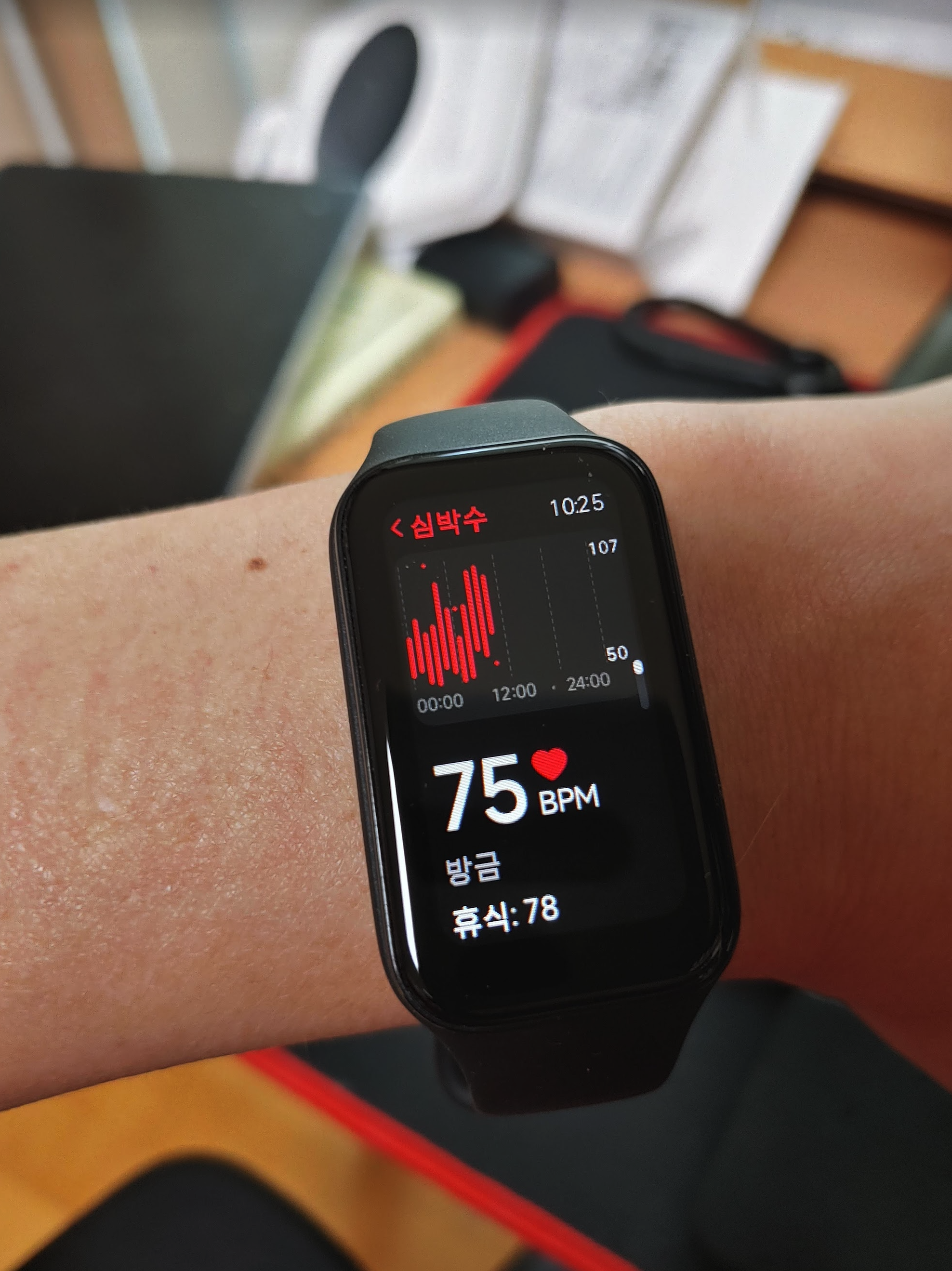 샤오미 미밴드 4는 조금 없어보이기는 하지만 가볍고 편하다. 그런데 얼마전부터 노안(....)으로 글자 보기가 불편해지기 시작했다. 최신 미밴드는 조금 화면이 커지고 시인성이 나아졌다고 해서 새 제품을 구매하려던 중... 레드미 스마트밴드라는 게 눈에 띄어서 구매했다. 가격 4만원 정도로 오히려 미밴드 7보다 싸다.