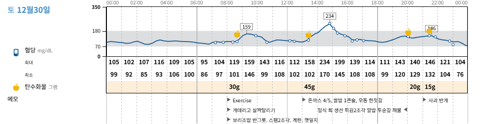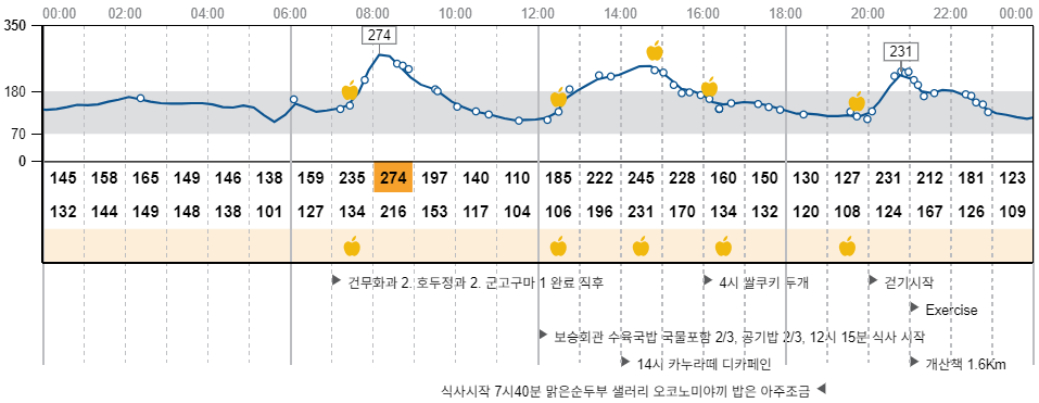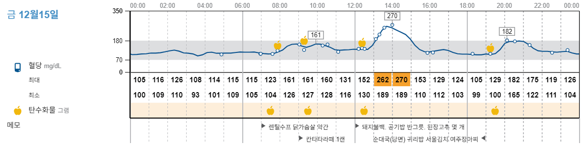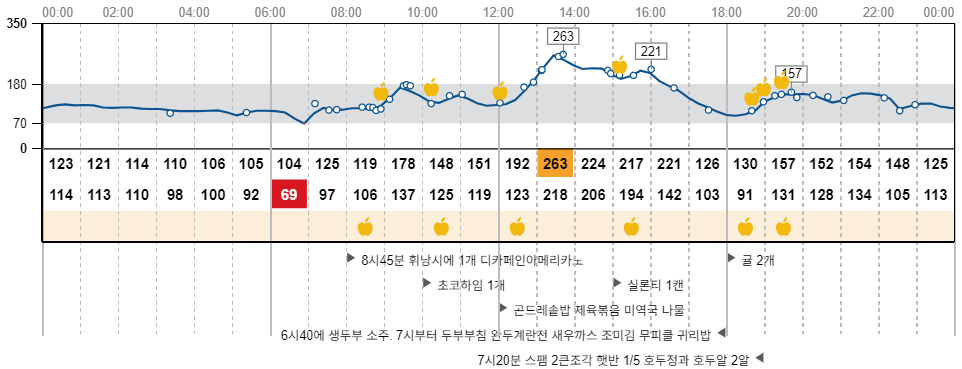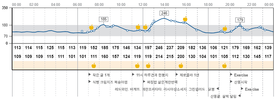 : 달게 먹은 이유도 있겠지만, 비염약(스테로이드) 때문에 밤 내내 혈당이 높은 상태였다