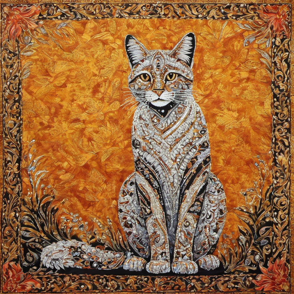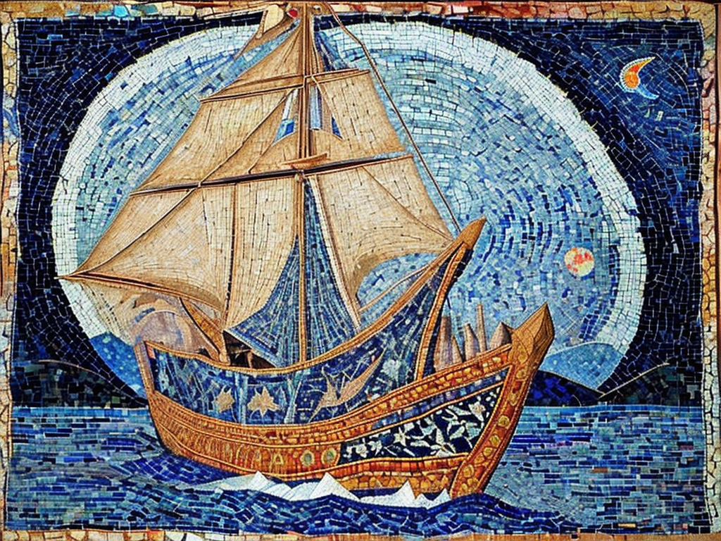 a persian medival ship , 1moon, batik, (mosaic:1.1), (surrealism:1.1), (2D:0.9)