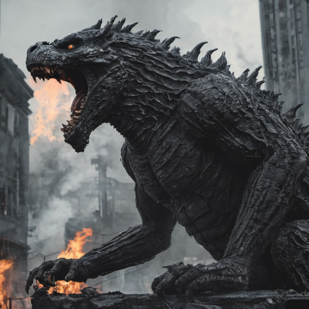 godzilla destoring the city, fire breath, dynamic lighting, historic, photorealistic, ultra detailed, RAW, trending on art station, stunning visuals, creative, cinematic, ultra detailed, scary art, dark, spooky, suspenseful, grim, highly detailed,