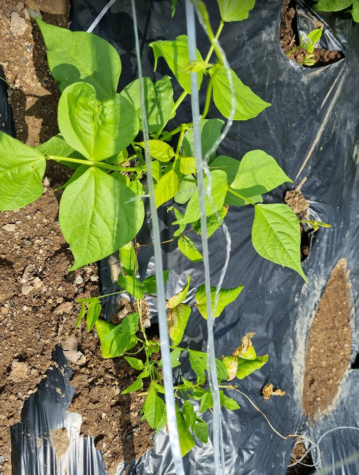 비슷한 열대성 작물인 줄기콩은 더 늦게 심었지만 쑥쑥 잘만 크는데 드래곤빈은 영 정신을 못 차리고 있다.