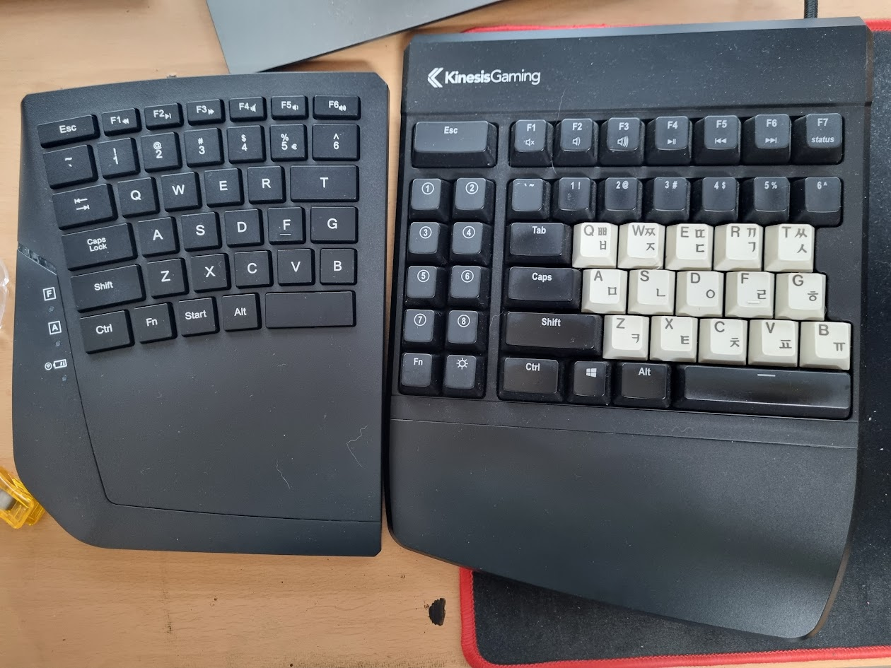 키네시스와 크기 비교해보면 왼쪽 유닛은 현저하게 더 작다.