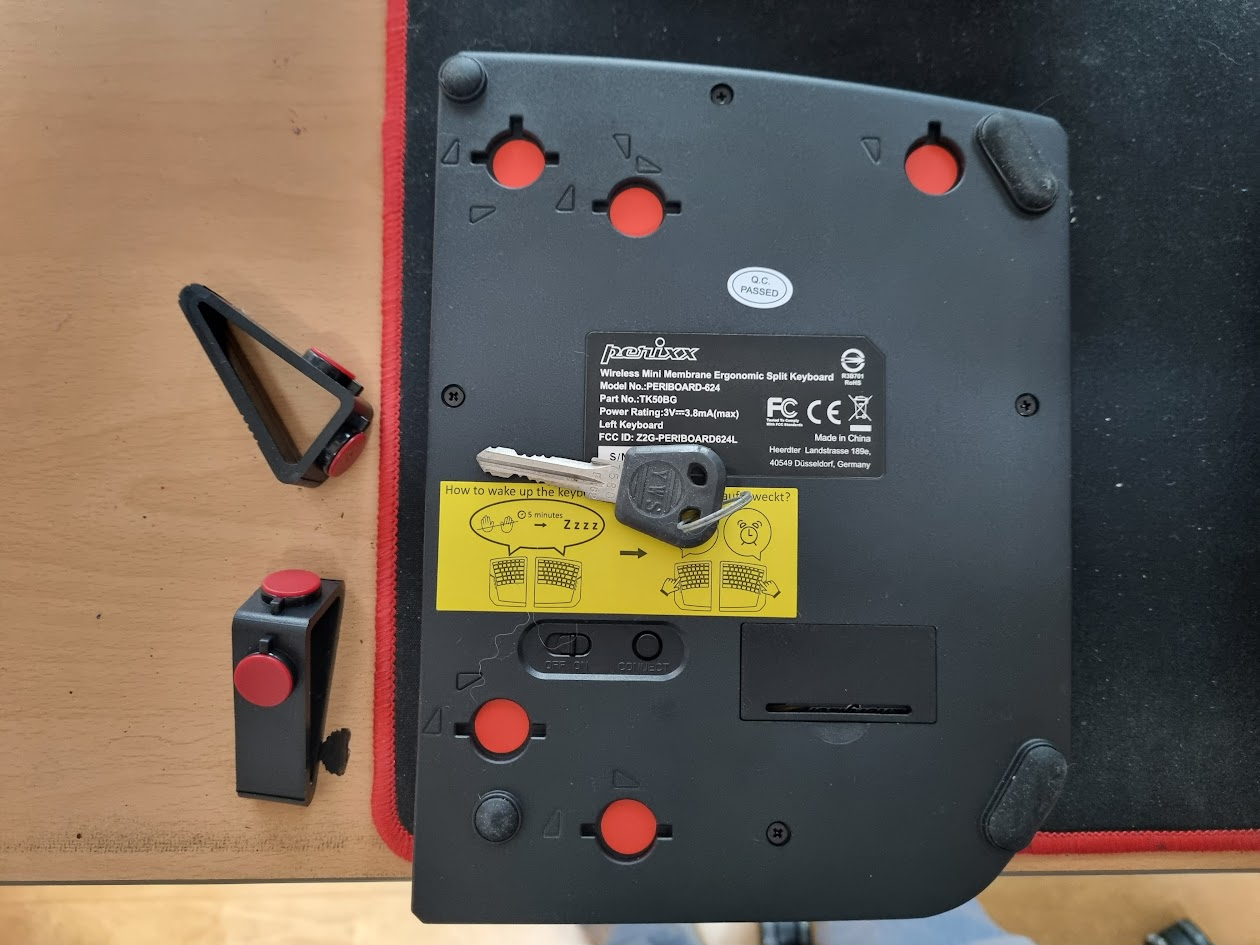 구성품은 단촐하게 키보드 두 짝, 동글 하나, 그리고 받침대 네 개. 조금 특이한 키보드라 설명서 하나는 있을 줄 알았는데 없다.