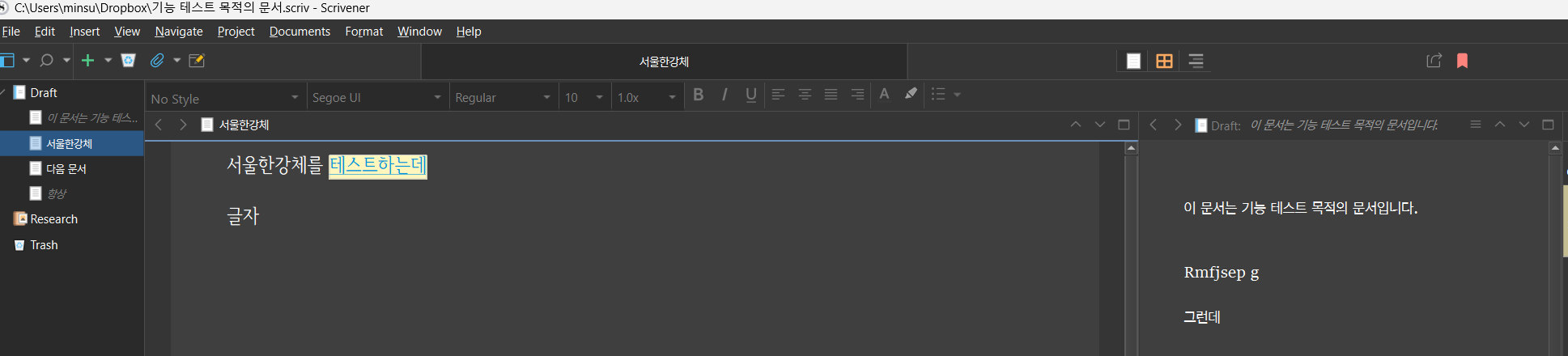 옵션 > Editing > Formatting 에서 문서창의 글자모양 변경