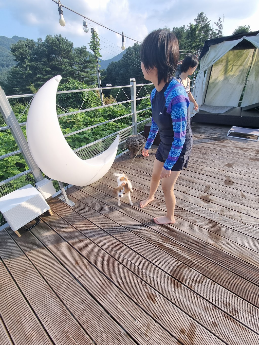애견펜션을 찾으면 보통 가평이 가장 많이 나오고 그 중 적당한 곳을 골라서 2박 3일 다녀왔다. 펜션은 보통 하룻밤 자면서 고기 구워먹고 오는 곳 아닌가 싶은데 우리 가족은 두 밤 자는 걸 선호. 오늘하루라는 이 펜션은 개 수영장과 사람 수영장이 나뉘어있고, 대부분의 투숙객이 개를 데려오는 곳이라, 개에 친화적인 분위기.
