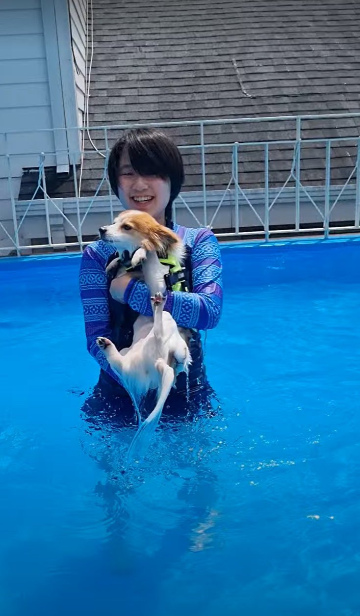 헤엄친 뒤 정줄 가출... 과자도 안 먹음... 딴 개 봐도 짖지도 않음..
