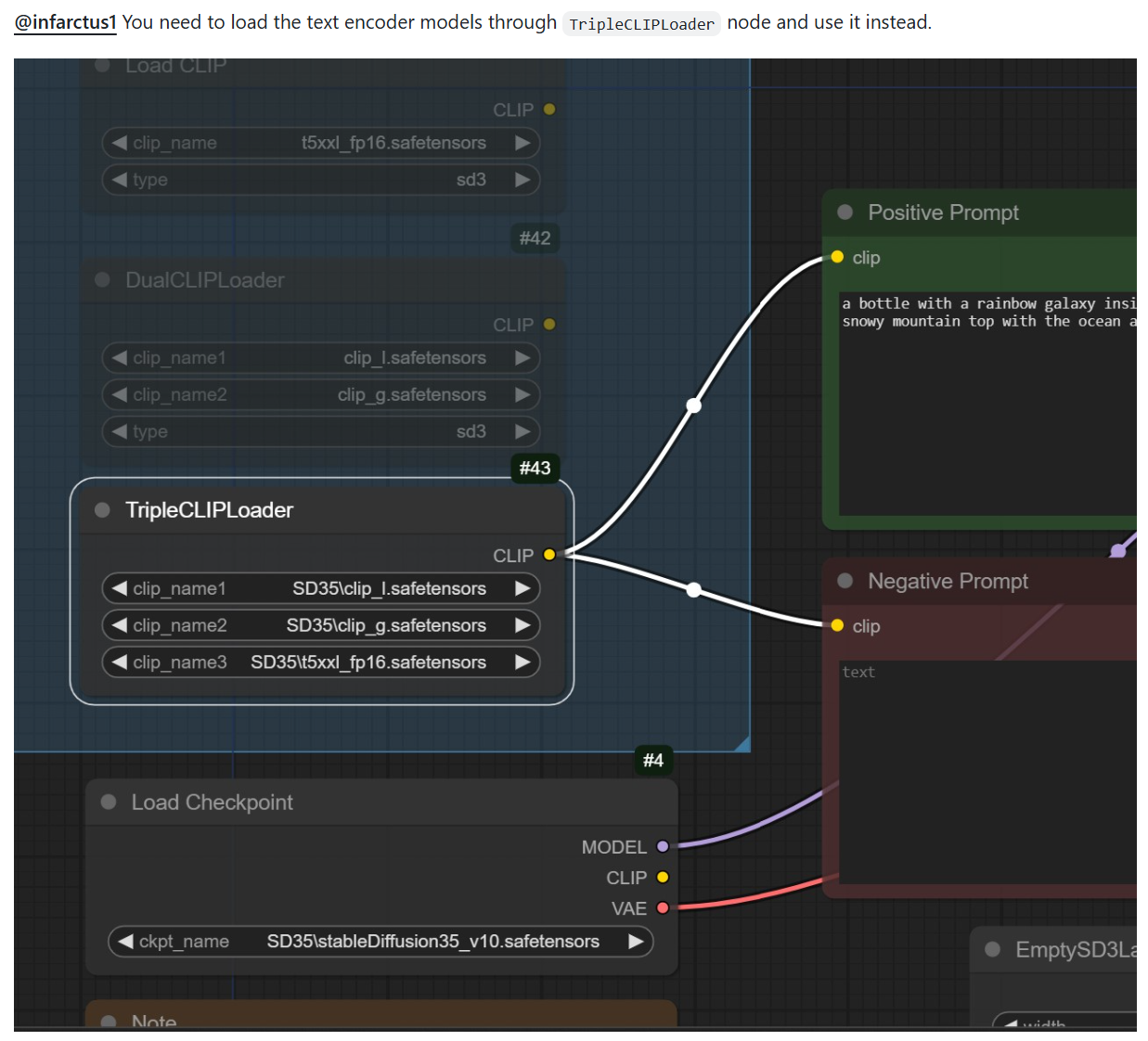 Your question Hello, Hello, I'm new to using ComfyUI. I recently downloaded the Stable Diffusion 3.5 large model, but I encountered an error as shown below. I searched a bit but couldn’t fully unde...