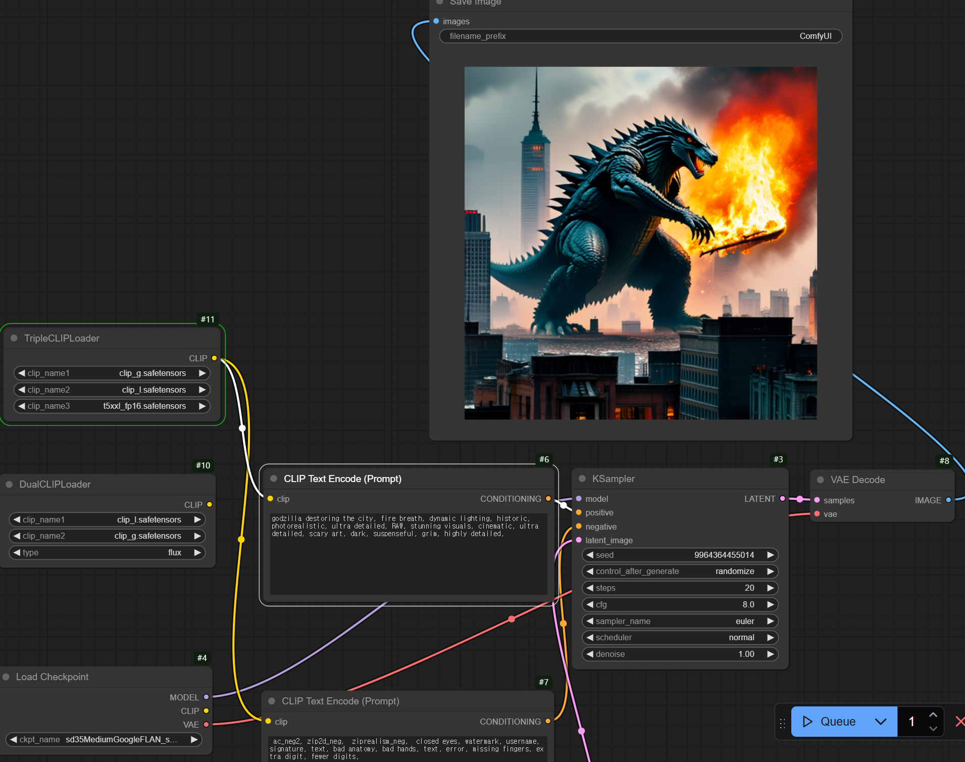 sd35MediumGoogleFLANFP8 이라는 safetensor를 적용하고,