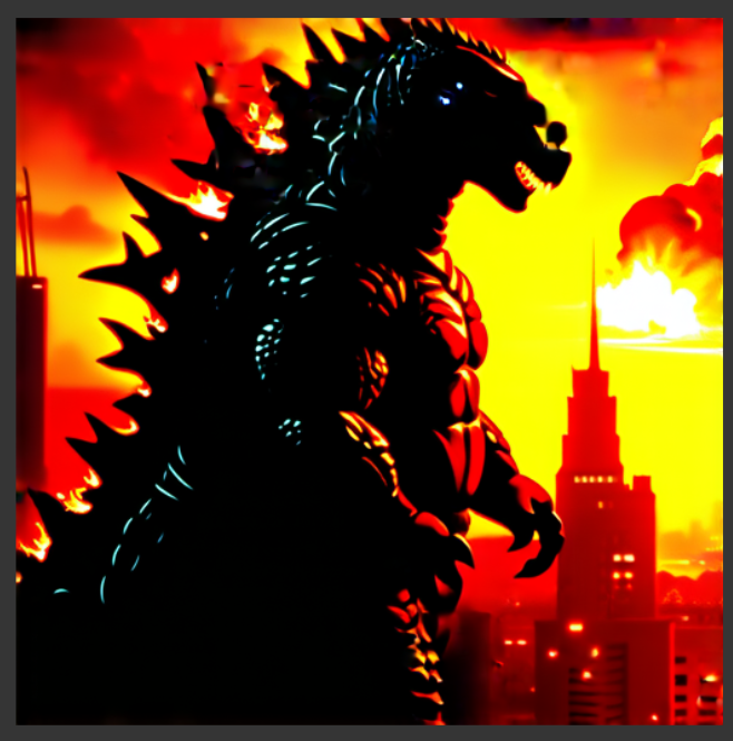 긍정 godzilla destoring the city, fire breath, dynamic lighting, historic, photorealistic, ultra detailed, RAW, stunning visuals, cinematic, ultra detailed, scary art, dark, suspenseful, grim, highly detailed,