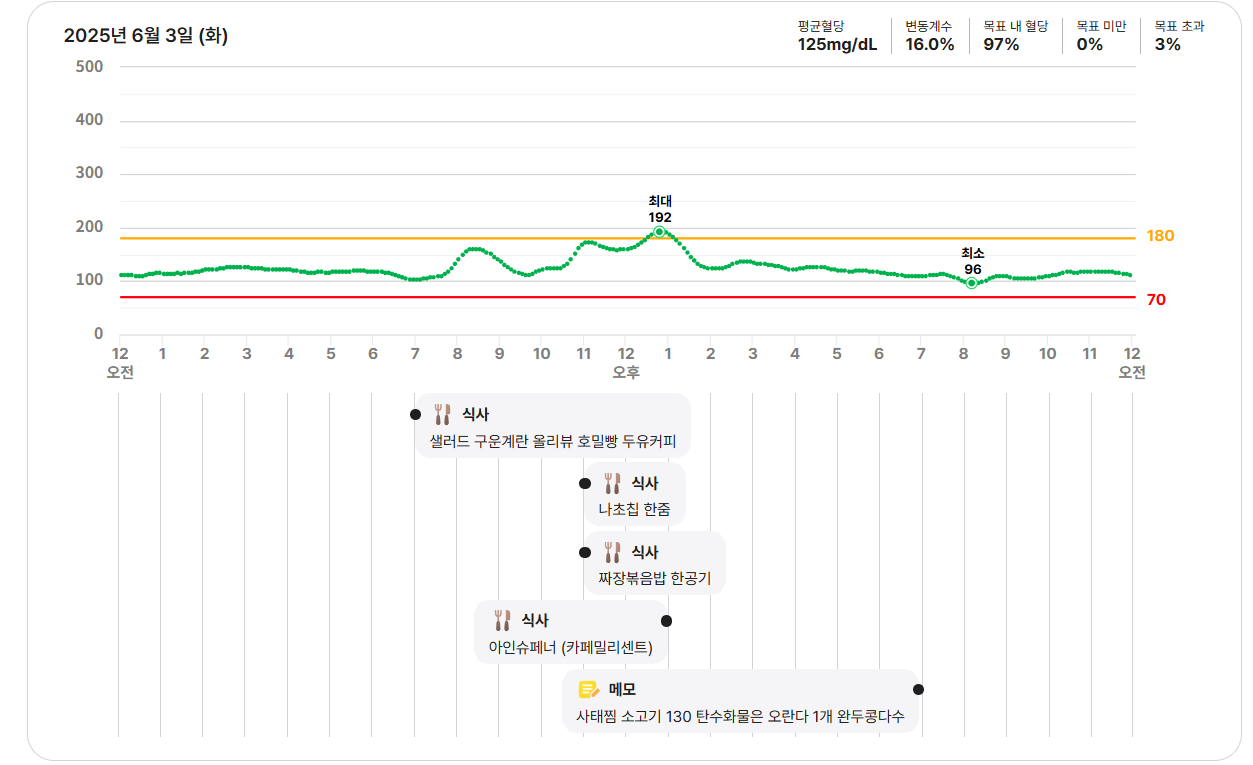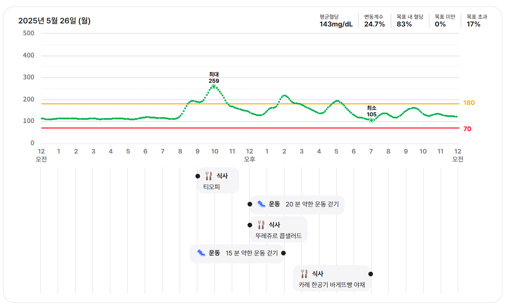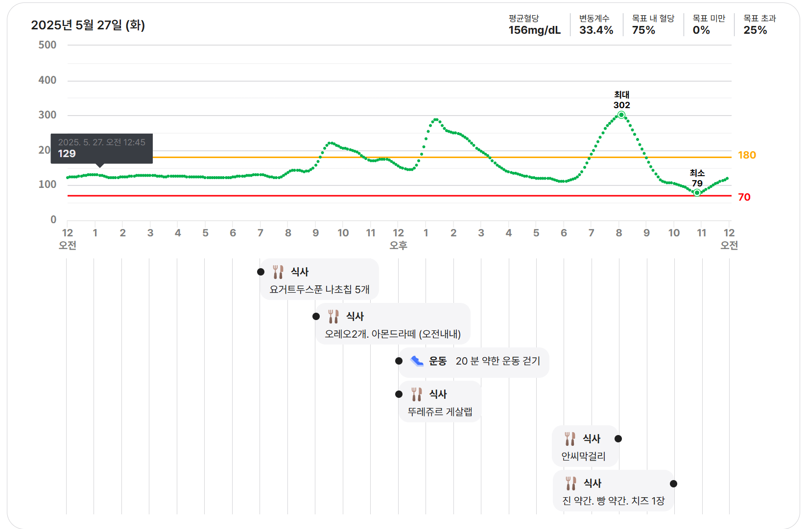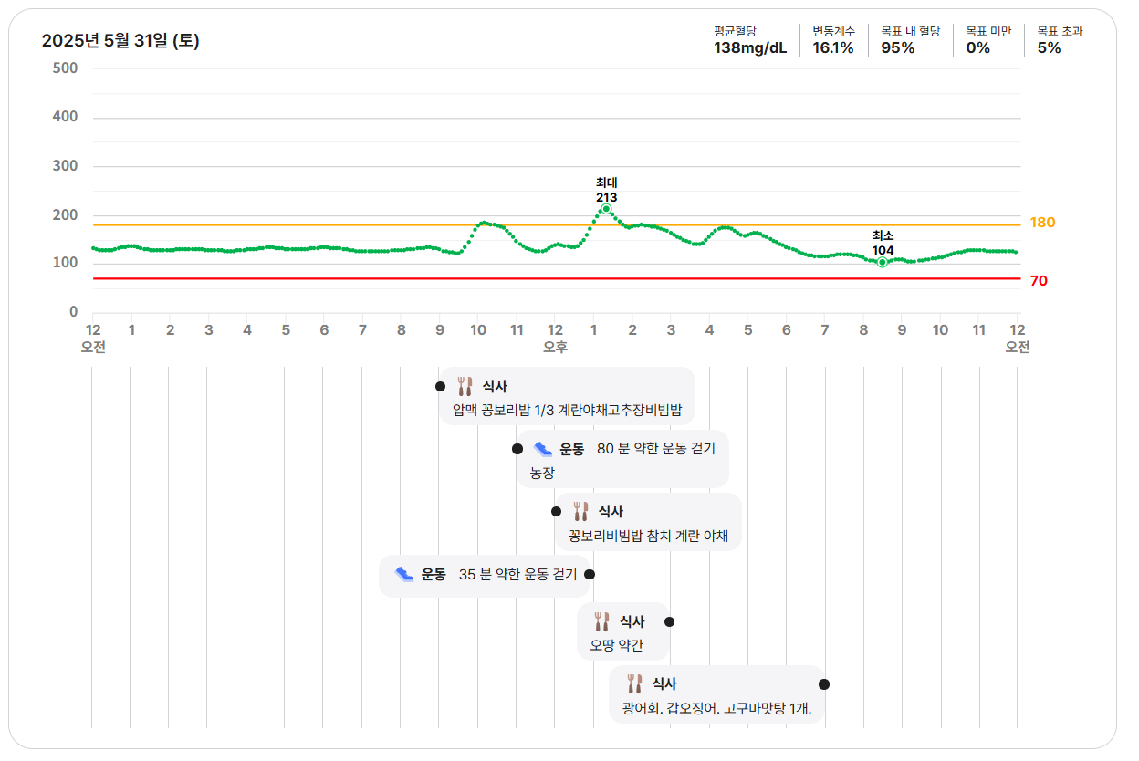 밤에 잠을 제대로 자지 못했는데 밤새 혈당도 120~150을 오르락내리락했다. (이런 적은 처음인 것 같다) 다음날 아침이 너무 피곤하고 정신이 들지 않았다
