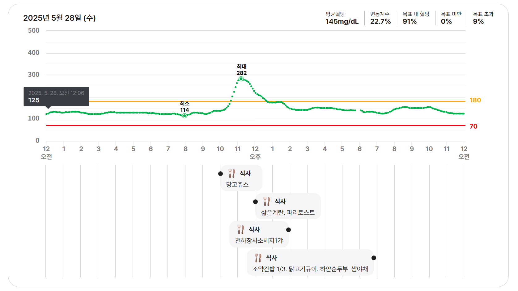 : 망고쥬스때문에 하도 올라서인지 오히려 점심에는 혈당이 안 오름