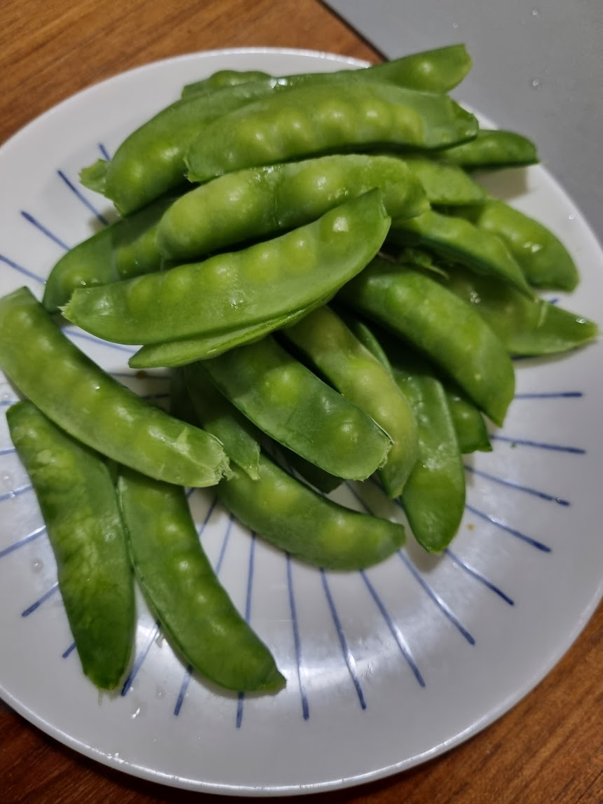 생으로 먹을 수는 있지만 그게 더 맛있지는 않아서, 소금물에 4~5분 정도 삶아보았다. 껍질에서 살짝 아삭한 식감이 남아있고 콩도 잘 익었다. 2~3분 정도만 삶으면 더 아삭아삭하게 먹을 수 있을 것 같다. 일반 완두의 단맛이 그대로 있는데 껍질도 먹을 수 있으니, 그냥 완두보다 훨씬 낫다. 다만 밥에 넣으면 완전히 떡이 되도록 퍼질 것 같다.